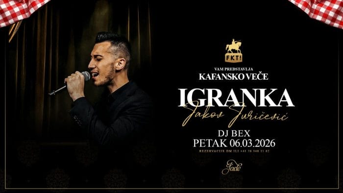 Uz poznatog svadbenog pjevača Jakova Juričevića i našeg resident DJ-a Bexa, očekuje vas prava kafanska atmosfera i muzika za dušu do ranih jutarnjih sati.