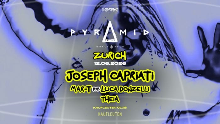 On June 12th, Zurich turns into an island: Pyramid by Amnesia is coming to Kaufleuten, bringing the sound, energy and unmistakable Ibiza spirit of the legendary club straight to the city. Pyramid is known worldwide for uncompromising nights somewhere between driving techno and hypnotic house — dark aesthetics, electric crowds and that special moment when bass and lights take over completely.