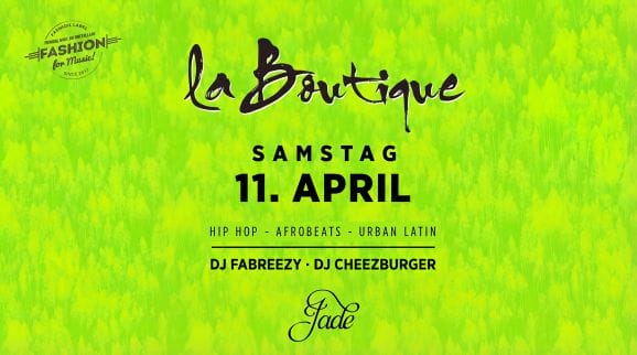 Der Jade Club bietet die perfekte Location für diese ganz besondere Nacht. Euch erwarten die besten Hits im Bereich Hip-Hop, Latin und Afrobeats – alles, was die Nacht unvergesslich macht. La Boutique war immer mehr als nur eine Party – sie war ein Lebensgefühl. Seid Teil dieses besonderen Moments und erlebt die Wiedergeburt einer der coolsten Hip Hop Partys der Stadt.