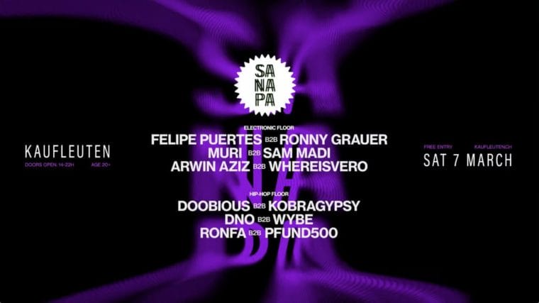 Feiern, wenn andere noch ihren Kater auskurieren? Hell yes! Sanapa ist eure Samstag-Nachmittag-Party, die euch von 14:00 bis 22:00 Uhr mit den besten Beats aus elektronischer Musik & Hip-Hop versorgt.