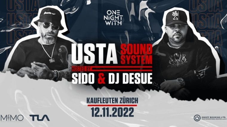 One Night With bringt das USTA Soundsystem hosted by Sido in deinen Lieblingsclub! Mit Hits wie „Mein Block“, „Tausend Tattoos“  oder „Bilder im Kopf“ ist Sido einer der wohl erfolgreichsten Rapper Deutschlands und macht nun Halt bei euch! Gemeinsam mit DJ Desue sind sie bereit für heiße Clubs, eine tanzende Menge und feinste Musik in Clubatmosphäre.