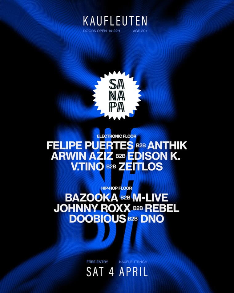 Feiern, wenn andere noch ihren Kater auskurieren? Hell yes! Sanapa ist eure Samstag-Nachmittag-Party, die euch von 14:00 bis 22:00 Uhr mit den besten Beats aus elektronischer Musik & Hip-Hop versorgt.
