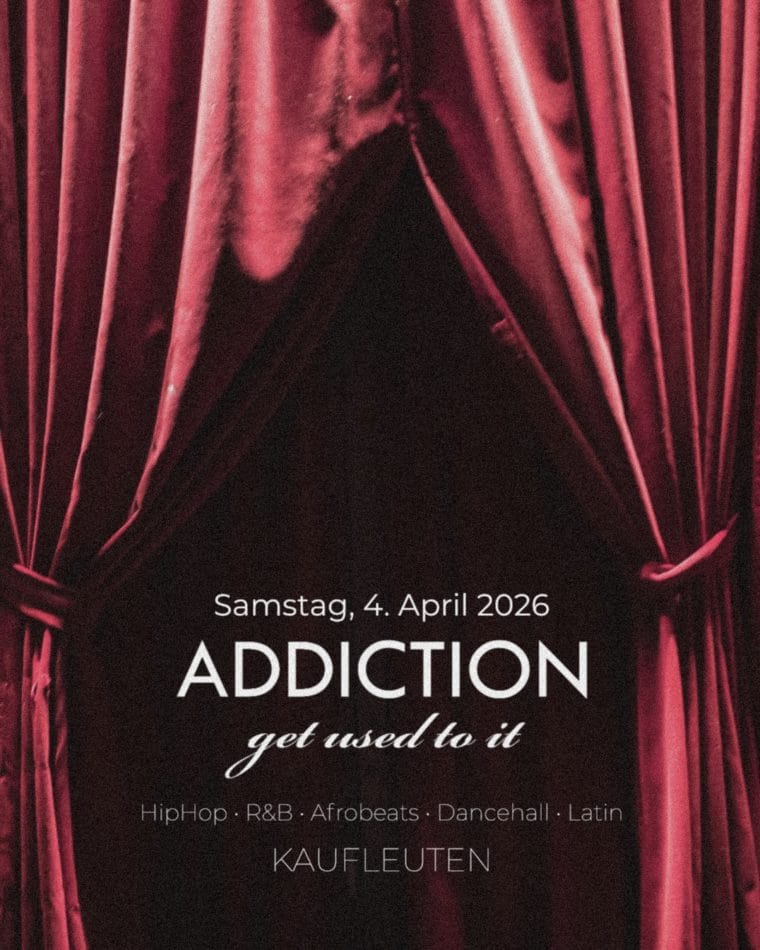 Noch vor kurzen in das neue Jahr gestartet, blicken wir voller Vorfreude bereits auf die vierte Ausgabe der ADDICTION im 2026. Die bisherigen Ausgaben haben gezeigt, dass der süchtig machende Mix auf HipHop, R&B, Afrobeats, Dancehall & Reggaeton auch im neuen Jahr ein sicherer Wert ist, den man nicht missen möchte! Im Monat April steht die ADDICTION am Samstag, 4. April 2026, ebenfalls wieder als high levelAmusement für alle Verzauberten im Kaufleuten Klub Zürich an! Verpasse es also nicht, deine Sucht zu stillen und tanze mit uns, den DJs KER, Big Boys & Eles, am Osterwochenende bis in die frühen Morgenstunden den Alltag aus der Seele raus. Falls du es noch nicht warst, wirst du dich, ohne es zu merken, schon jetzt auf die nächste Ausgabe sehnen…get used to it.