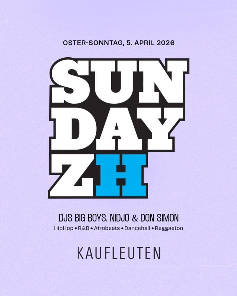 Wenn an einem Montag wieder mal in der ganzen Schweiz offiziell nicht gearbeitet werden muss, dann kannst du dir den Sonntag davor fett im Kalender anstreichen. So auch am Ostersonntag, 5. April 2026! Dann steigt zum ersten Mal die SUNDAYZ im Kaufleuten Klub Zürich. Faul herumliegen und TV-Abend machen brauchst du also nicht, denn am Pelikanplatz sorgen wir für einen gelungenen Abschluss vom Osterwochenende! An der ersten Ausgabe im Kaufleuten begeistern euch die besten DJs des Landes mit einem Mix aus HipHop, R&B, Afrobeats, Dancehall & Reggaeton! Wenn also Urban Music, Lucky Charm & Poppin Bottles genau dein Ding ist, dann sehen wir uns am Ostersonntag an der SUNDAYZ im Kaufleuten.