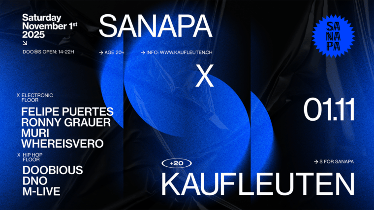 Feiern, wenn andere noch ihren Kater auskurieren? Hell yes! Sanapa ist eure Samstag-Nachmittag-Party, die euch von 14:00 bis 22:00 Uhr mit den besten Beats aus elektronischer Musik & Hip-Hop versorgt.