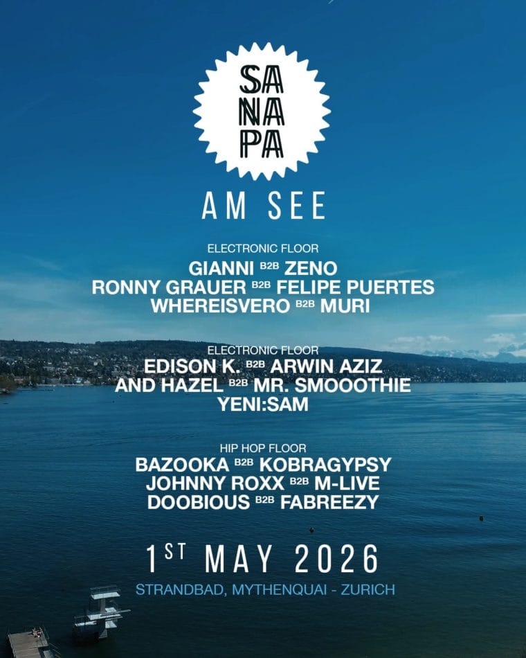 Am Freitag, 1. Mai, ist es endlich so weit: Sanapa findet zum ersten Mal im Strandbad Mythenquai statt – direkt am wunderschönen Zürichsee und in einer Location, die perfekt für einen unvergesslichen Eventtag ist.